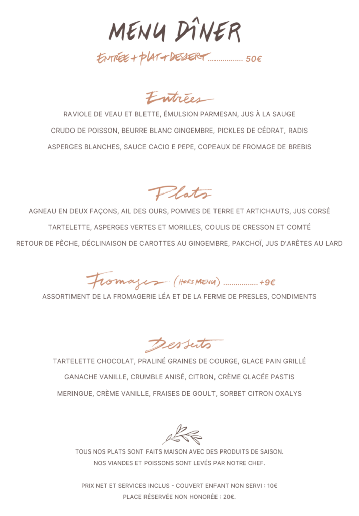 MENU DÎNER